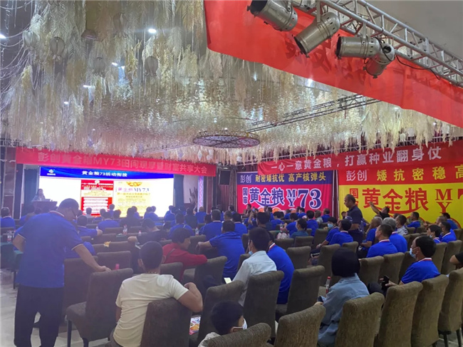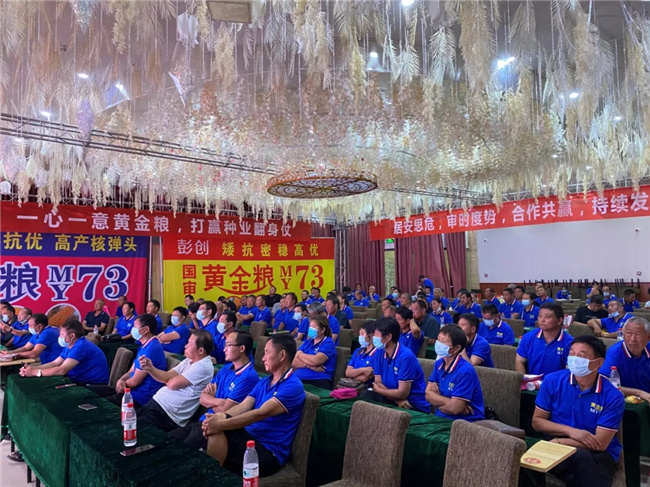 室內(nèi)會(huì)議,彭創(chuàng)公司分享黃淮、東北、西北、西南等全國(guó)范圍內(nèi)黃金糧73的大田優(yōu)良表現(xiàn)、銷售政策,以及優(yōu)秀經(jīng)銷商、以及一萬(wàn)袋以上零售商發(fā)言等環(huán)節(jié),會(huì)議現(xiàn)場(chǎng)熱情高漲,紛紛表示要和公司保持同頻把黃金糧做成千萬(wàn)級(jí)別大品種。