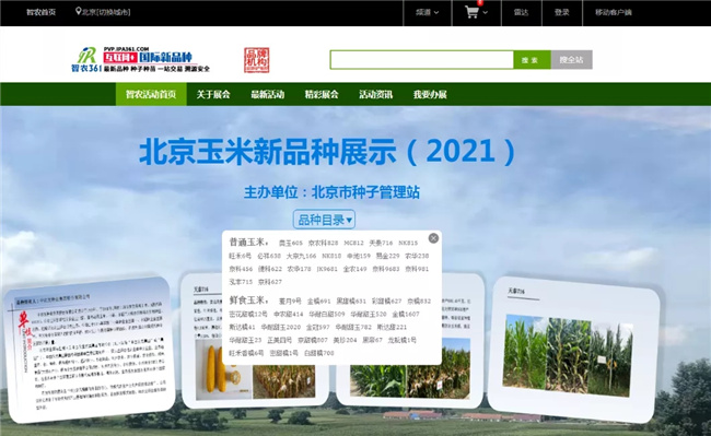 為做好相關(guān)工作,今年市種子管理站開展了玉米新品種展示活動,分別在豐臺和通州區(qū)進行了田間品種展示,同時在智農(nóng)三六一網(wǎng)上進行線上玉米品種現(xiàn)場展示。9月13日,新品種電子展廳正式上線,設(shè)定了720度體驗場景。本次共展示鮮食玉米品種24個,普通玉米品種21個,其中部分品種有新品種權(quán)或正在申請新品種權(quán)。電子展示廳品種介紹詳細,各生育期電子照片豐富,企業(yè)和購買用戶隨時可以點擊網(wǎng)站,查找和觀看每一個品種的各階段圖片和詳細信息。