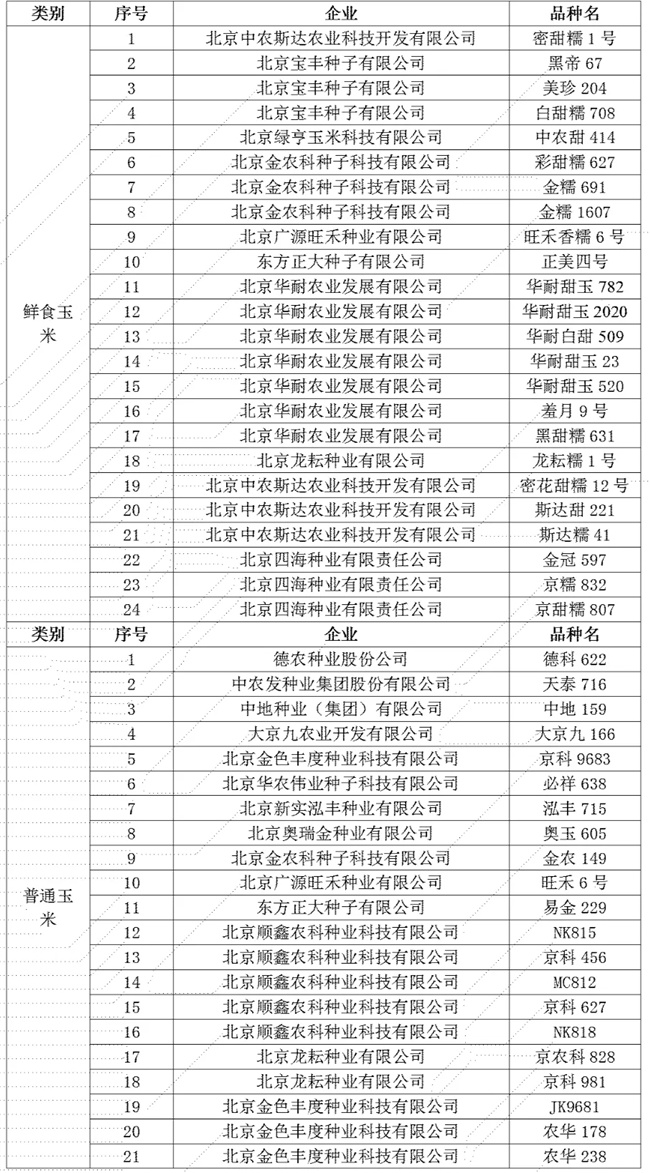 品種信息和企業(yè)信息如下: