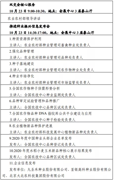 雙交會(huì)是引領(lǐng)行業(yè)管理、品種創(chuàng)新、技術(shù)升級(jí)和企業(yè)發(fā)展的風(fēng)向標(biāo)。本屆雙交會(huì)將全面展示國(guó)家及各省種業(yè)發(fā)展成效,發(fā)布種業(yè)振興行動(dòng)重點(diǎn)工作和重大舉措,資源利用、品種創(chuàng)新、企業(yè)扶優(yōu)、基地提升和市場(chǎng)凈化的新舉措,品種區(qū)試管理和推廣、種子質(zhì)量監(jiān)督檢驗(yàn)、植物新品種權(quán)保護(hù)、全國(guó)種子市場(chǎng)供需和年度行業(yè)頭部企業(yè)名單、年度品種推廣情況等新動(dòng)態(tài)。
