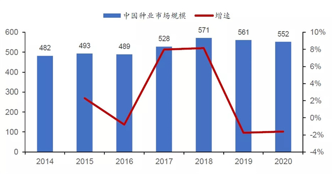 圖表1 2014-2020年全球種業(yè)市場規(guī)模(單位:億美元)