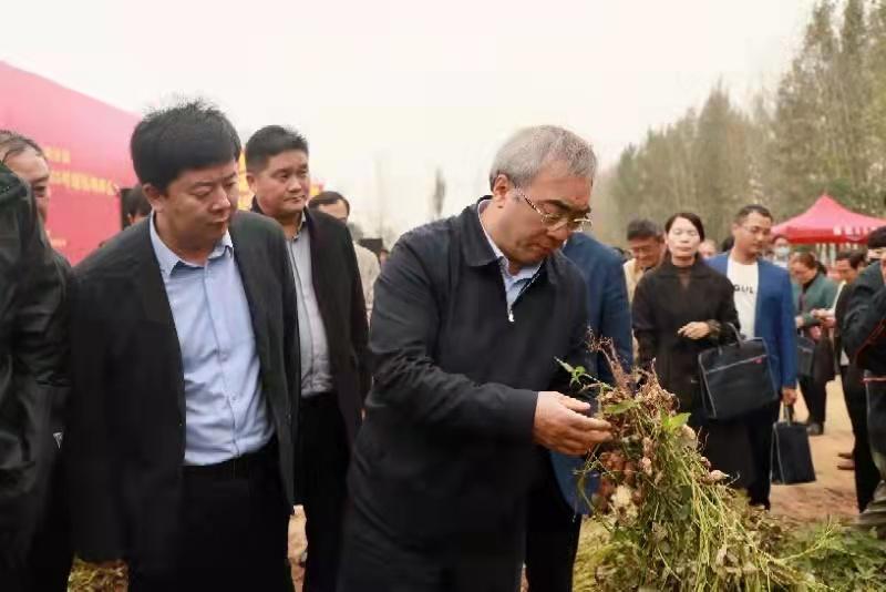 張新友院長(zhǎng)在講話中充分肯定了漯河市金秋樂種業(yè)產(chǎn)業(yè)化聯(lián)合體的運(yùn)營(yíng)方式,深入分析了當(dāng)前我省花生產(chǎn)業(yè)發(fā)展優(yōu)勢(shì)及存在的主要問題,并就推動(dòng)漯河市花生產(chǎn)業(yè)高質(zhì)量發(fā)展提出了指導(dǎo)性意見。他指出,一要加強(qiáng)規(guī)劃引領(lǐng),完善配套政策。根據(jù)漯河當(dāng)?shù)刭Y源稟賦、氣候特點(diǎn)和產(chǎn)業(yè)發(fā)展趨勢(shì),進(jìn)一步完善漯河花生產(chǎn)業(yè)高質(zhì)量發(fā)展規(guī)劃,因地制宜出臺(tái)相關(guān)鼓勵(lì)花生產(chǎn)業(yè)發(fā)展的扶持政策和措施。二要通過科技賦能,提高規(guī)?;?、標(biāo)準(zhǔn)化種植水平。加大優(yōu)質(zhì)專用花生新品種的推廣力度,加快農(nóng)機(jī)農(nóng)藝融合、化肥農(nóng)藥減施、防災(zāi)減災(zāi)等技術(shù)的研發(fā)與推廣,探索現(xiàn)代信息技術(shù)與花生生產(chǎn)的深度融合,提高漯河花生規(guī)模化、標(biāo)準(zhǔn)化種植水平。三要通過“三鏈同構(gòu)”提升產(chǎn)業(yè)效益和競(jìng)爭(zhēng)力。充分發(fā)揮漯河食品名城的品牌優(yōu)勢(shì)和食品加工的比較優(yōu)勢(shì),大力發(fā)展花生食品和特色產(chǎn)品,圍繞花生精深加工做好文章,著力打造漯河特色的花生品牌集群,探索推動(dòng)河南花生產(chǎn)業(yè)高質(zhì)量發(fā)展的漯河模式。