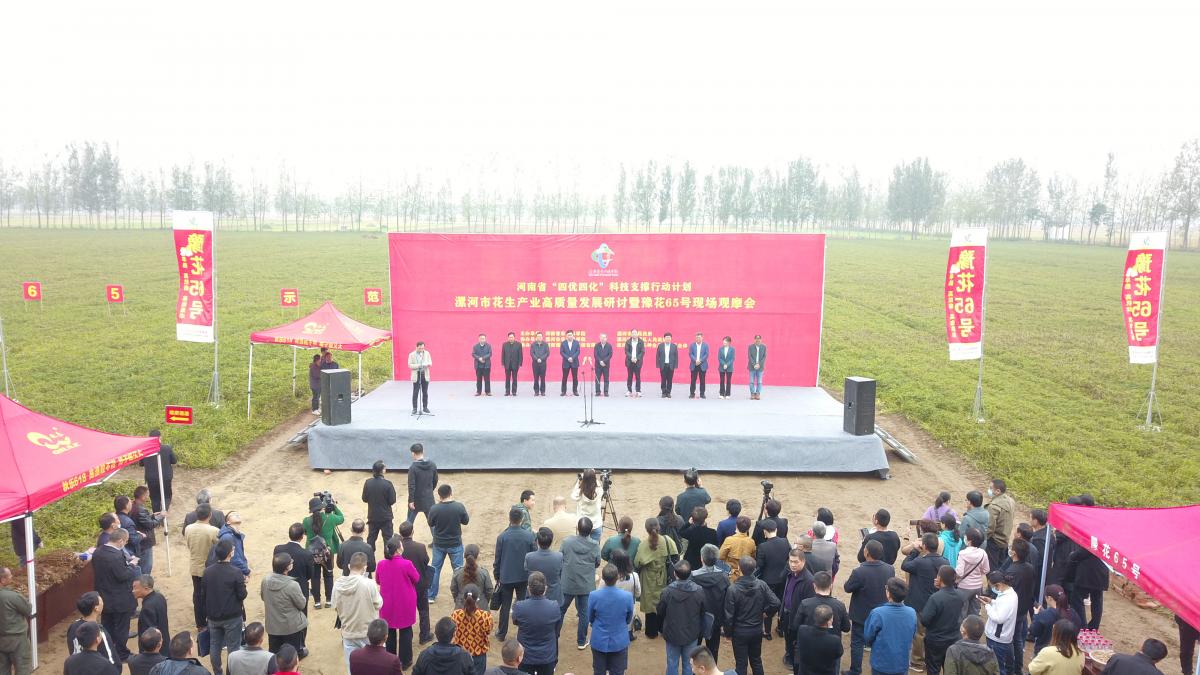 10月15日,我院在漯河組織召開高油酸花生新品種豫花65號(hào)現(xiàn)場(chǎng)觀摩暨花生產(chǎn)業(yè)高質(zhì)量發(fā)展研討會(huì)。中國(guó)工程院院士、我院院長(zhǎng)張新友、副院長(zhǎng)衛(wèi)文星,省農(nóng)業(yè)農(nóng)村廳經(jīng)作處處長(zhǎng)黃偉、省經(jīng)濟(jì)作物推廣站站長(zhǎng)鄭乃福,漯河市委常委、統(tǒng)戰(zhàn)部部長(zhǎng)喬彥強(qiáng)等領(lǐng)導(dǎo)和專家出席會(huì)議。