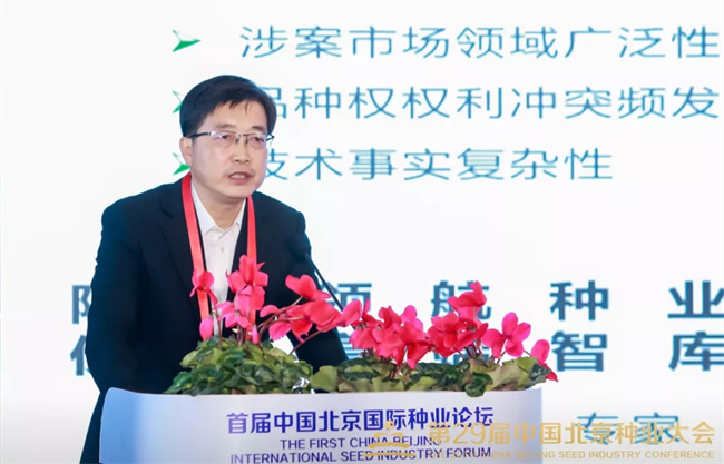 10月19日,首屆中國(guó)北京國(guó)際種業(yè)論壇在北京園博園舉行。北京市委農(nóng)工委書記、市農(nóng)業(yè)農(nóng)村局局長(zhǎng)付兆庚,海淀區(qū)人民政府副區(qū)長(zhǎng)林航,北京知識(shí)產(chǎn)權(quán)法院黨組成員、副院長(zhǎng),二級(jí)高級(jí)法官杜長(zhǎng)輝,最高人民法院知識(shí)產(chǎn)權(quán)法庭審判長(zhǎng)、二級(jí)高級(jí)法官羅霞,中國(guó)種子協(xié)會(huì)副會(huì)長(zhǎng)馬淑萍、中國(guó)種子貿(mào)易協(xié)會(huì)理事長(zhǎng)宋維波等出席。