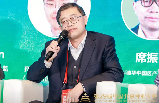 大北農(nóng)集團(tuán)常務(wù)副總裁兼作物科技產(chǎn)業(yè)總裁劉石主持論壇互動(dòng)討論環(huán)節(jié)。