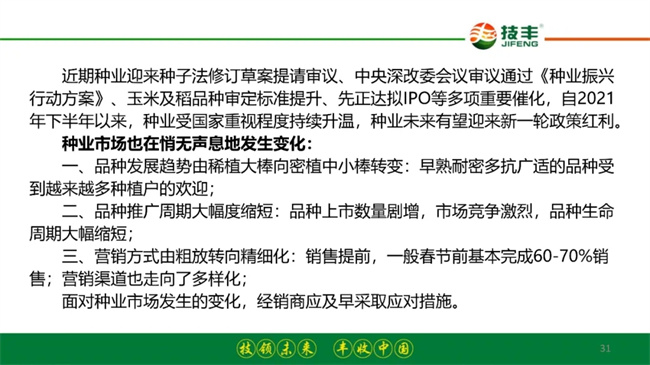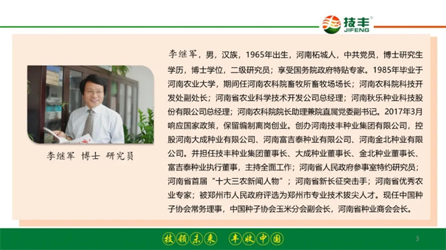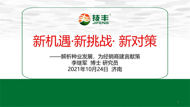 10月24日上午,在第十八屆全國(guó)種子雙交會(huì)——第三屆中國(guó)農(nóng)資(種藥肥)經(jīng)銷(xiāo)商大會(huì)上,河南技豐種業(yè)集團(tuán)董事長(zhǎng)李繼軍博士、研究員做了題為“新機(jī)遇·新挑戰(zhàn)·新對(duì)策——解析種業(yè)發(fā)展,為經(jīng)銷(xiāo)商建言獻(xiàn)策”的報(bào)告。