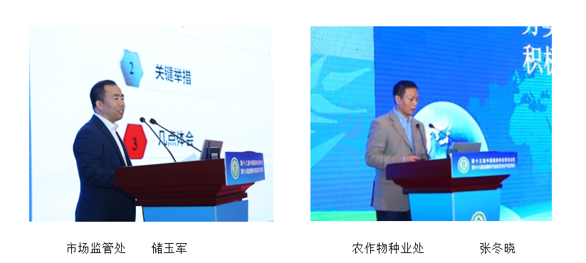 10月23日,農(nóng)業(yè)農(nóng)村部種業(yè)管理司市場監(jiān)管處處長、一級(jí)調(diào)研員儲(chǔ)玉軍,農(nóng)作物種業(yè)處處長、一級(jí)調(diào)研員張冬曉,品種創(chuàng)新處副處長陶偉國,畜禽種業(yè)處一級(jí)主任科員孫雯在第十三屆中國國際種業(yè)博覽會(huì)暨第十八屆全國種子信息交流與產(chǎn)品交易會(huì)上,通報(bào)了推進(jìn)種業(yè)振興行動(dòng)有關(guān)進(jìn)展情況,面向省級(jí)農(nóng)業(yè)農(nóng)村部門、種子企業(yè)、社會(huì)媒體等參展主體發(fā)布了種子基地建設(shè)、種質(zhì)資源保護(hù)、提高品種審定標(biāo)準(zhǔn)、市場種業(yè)凈化等方面工作最新進(jìn)展信息。