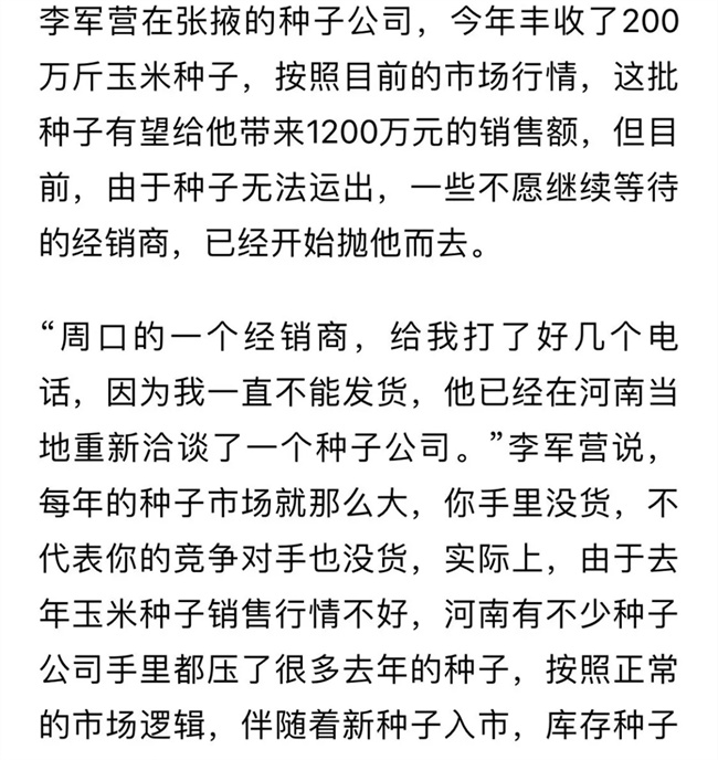 新種子運不出、賣不掉,老種子卻大行其道!張掖農(nóng)作物種子調(diào)運亟待暢通!