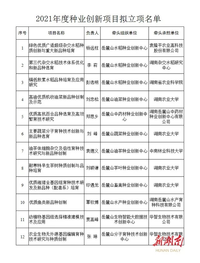 組織實施種業(yè)創(chuàng)新項目,首批擬立項12項