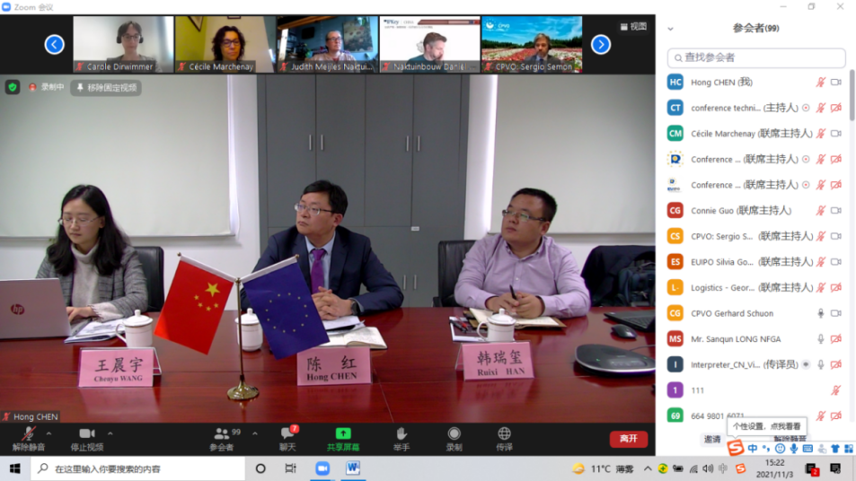 11月3-5日,中心與歐盟植物新品種保護辦公室(CPVO)、IPKey China聯(lián)合主辦2021 IPKey植物新品種權(quán)技術(shù)培訓(xùn)班在線舉辦。來自我國農(nóng)業(yè)、林業(yè)植物新品種保護測試體系的90多名代表參加,中心植物新品種測試處陳紅處長出席開幕式并致辭。