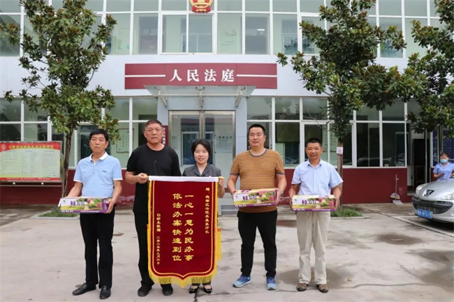 為表達(dá)謝意,9月8日上午,白某來到河南省許昌市魏都區(qū)人民法院七里店法庭,將繡有“一心一意為民辦事、依法辦快速到位”的錦旗和自己種的葡萄交到河南省許昌市魏都區(qū)人民法院七里店法庭副庭長吳真真手里。
