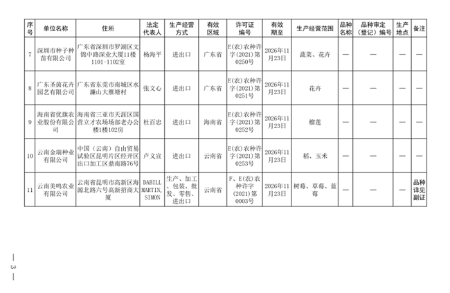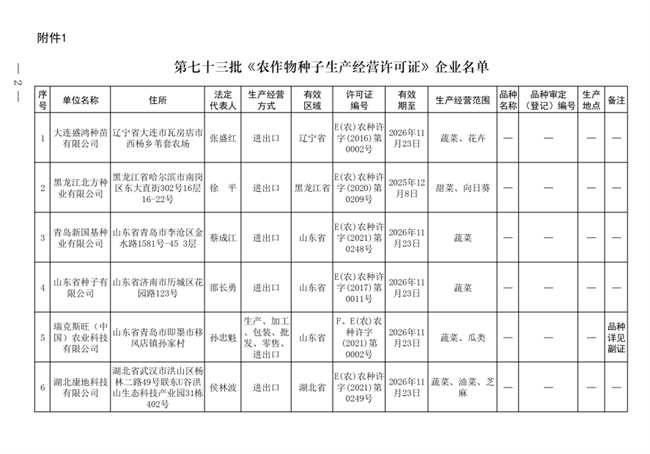 農(nóng)業(yè)農(nóng)村部新批準(zhǔn)發(fā)放種子生產(chǎn)經(jīng)營(yíng)許可證名單