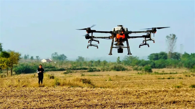 11月3日,深秋時(shí)節(jié),善厚鎮(zhèn)萬元村一處農(nóng)田的田埂上,種植大戶朱禮明和自家的無人機(jī)飛手陳肖峰,正在進(jìn)行飛播作業(yè)。