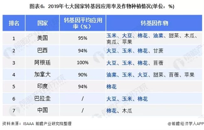 在轉(zhuǎn)基因應(yīng)用率方面,2019年,五大轉(zhuǎn)基因種植國家的平均應(yīng)用率已接近飽和,其中美國95%、巴西94%、阿根廷接近100%、加拿大90%、印度94%,若要進(jìn)一步擴(kuò)大這些國家的轉(zhuǎn)基因作物面積,則需要有新的轉(zhuǎn)基因作物和性狀批準(zhǔn)井商業(yè)化。