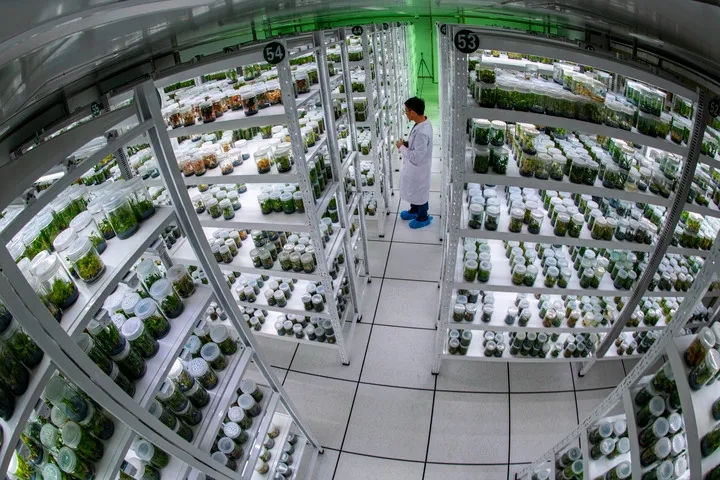 2021年10月20日,在中國西南野生生物種質(zhì)資源庫拍攝的離體保存庫 新華社記者 江文耀攝