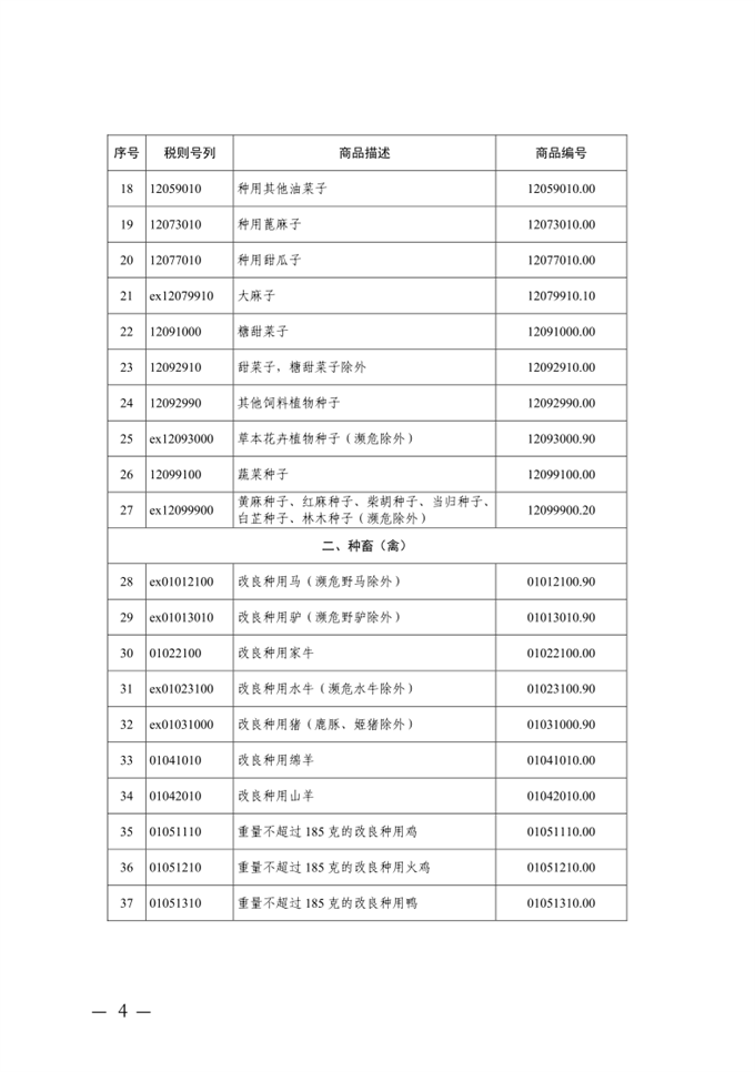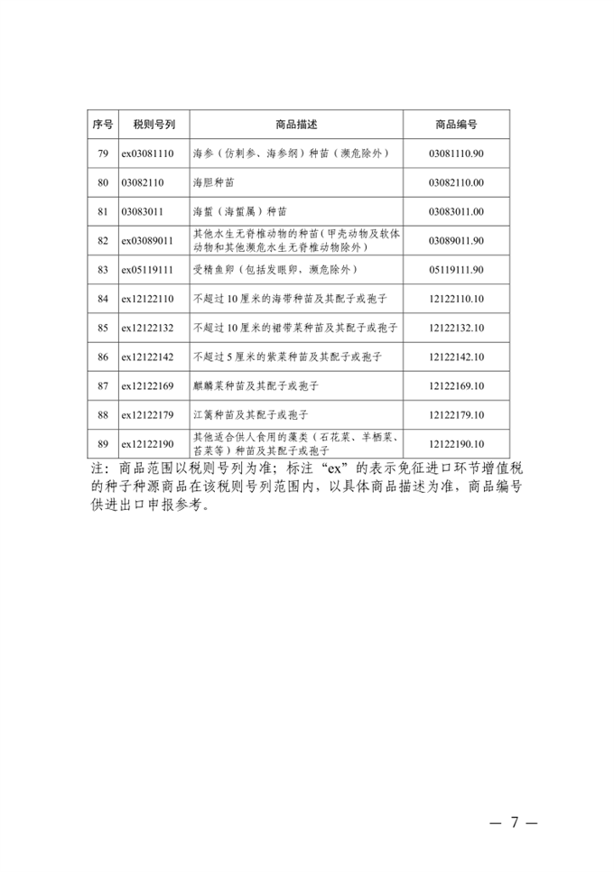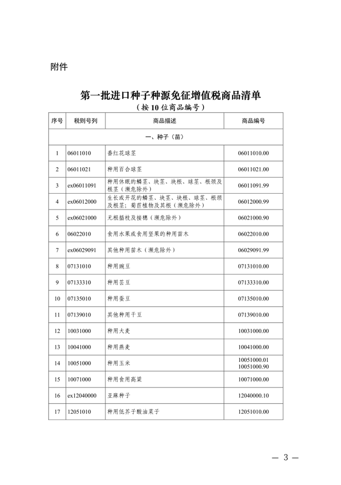 附件:第一批進(jìn)口種子種源免征增值稅商品清單(按10位商品編號(hào))