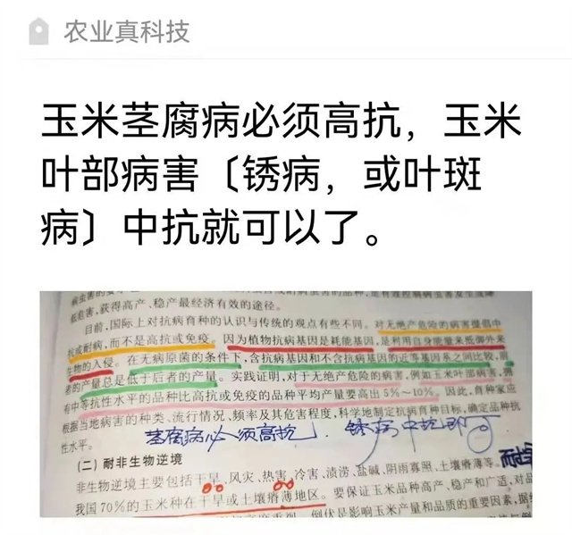因?yàn)?,前面講過了,玉米高抗莖腐病的重要性【請(qǐng)注意是“高抗莖腐病”,不是“抗莖腐病”更不是更低級(jí)別的“中抗莖腐病”或“感莖腐病”】——也就是說,不能高抗莖腐病的品種,必將毀滅(只是這個(gè)品種哪一年毀滅的問題)。比如,河南省有2個(gè)玉米品種都積壓了幾百萬畝的種子而面臨“轉(zhuǎn)商”,是圈子里都知道的“公開的秘密”。