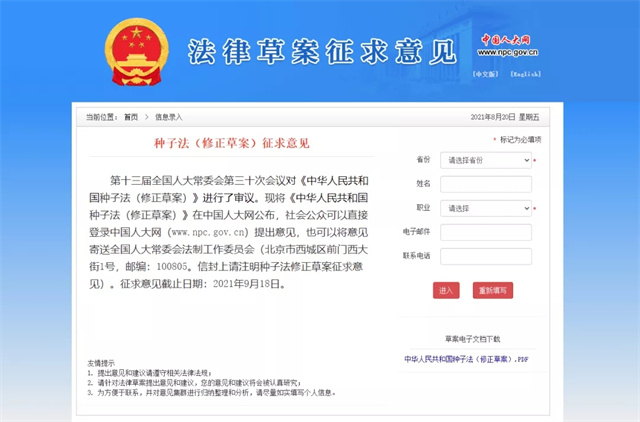 ? 12月24日,通過(guò)《全國(guó)人民代表大會(huì)常務(wù)委員會(huì)關(guān)于修改〈中華人民共和國(guó)種子法〉的決定》,自2022年3月1日起施行。