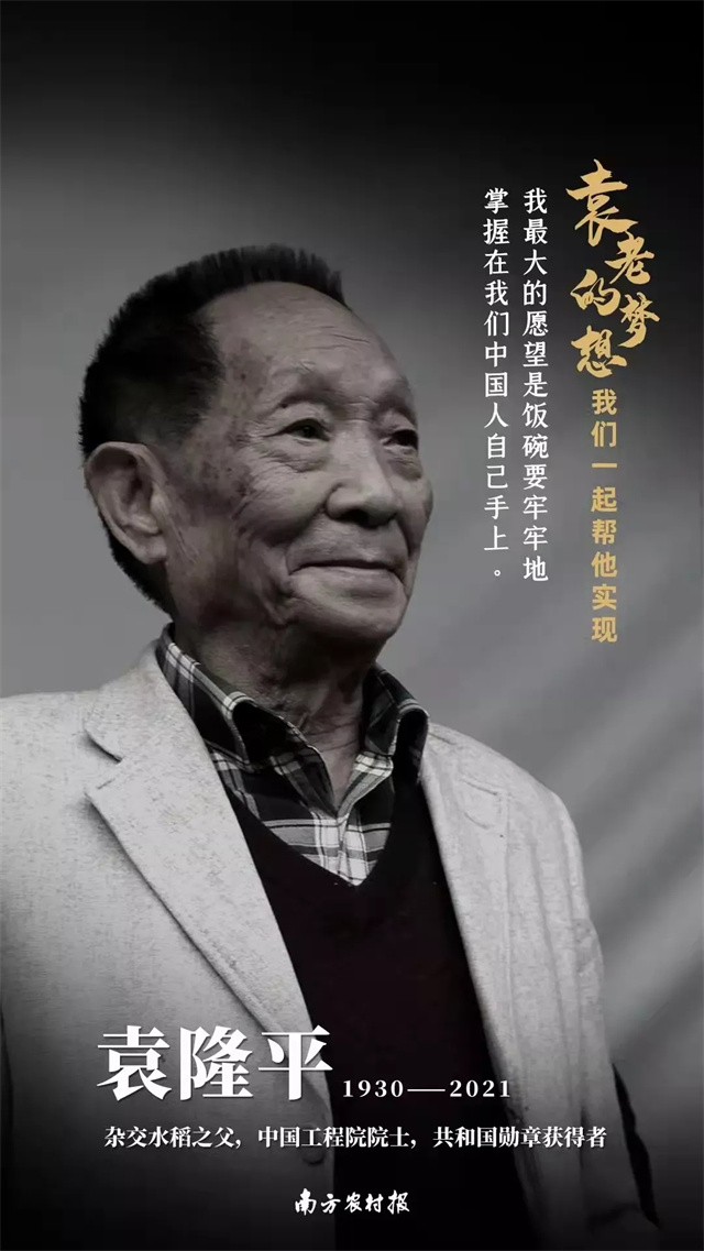 2021年5月22日13時(shí)07分,“雜交水稻之父”、中國(guó)工程院院士、“共和國(guó)勛章”獲得者袁隆平,因多器官功能衰竭,在長(zhǎng)沙逝世,享年91歲。
