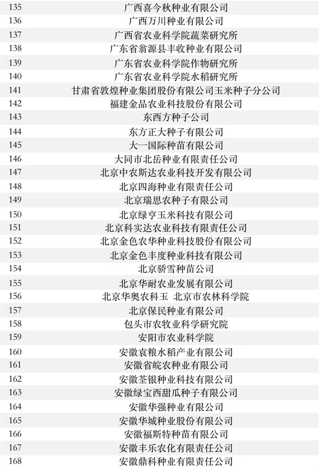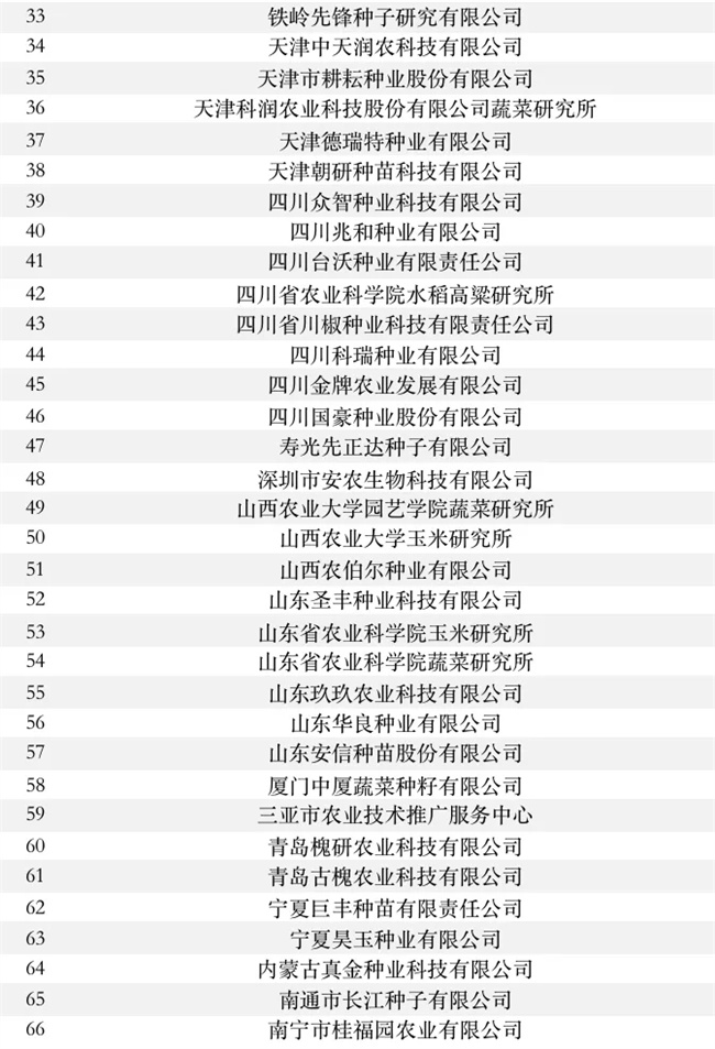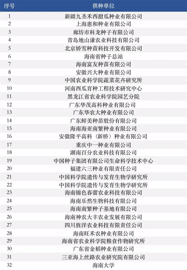 公共試驗(yàn)基地供種單位名錄