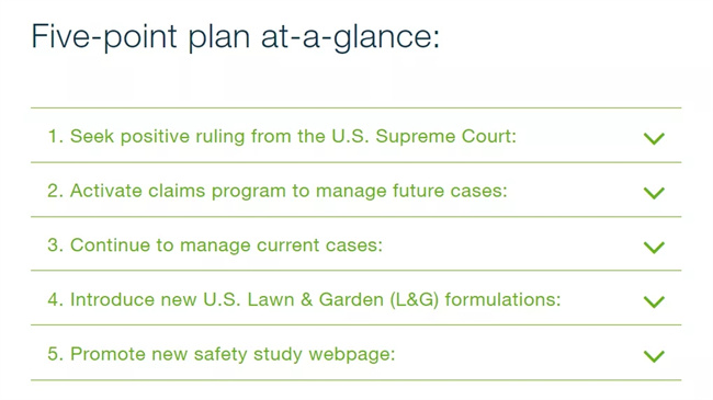 拜耳集團(tuán)關(guān)于草甘膦訴訟提出的“5點(diǎn)計(jì)劃”。
