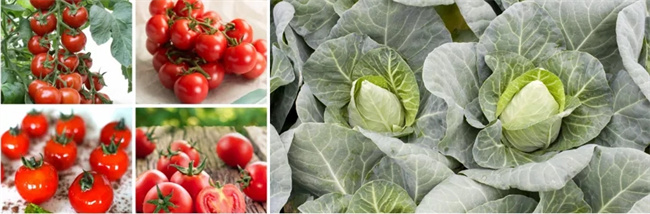 左邊為“佳西娜串番茄”,右邊是牛心甘藍(lán)“茶瑪30-603”。