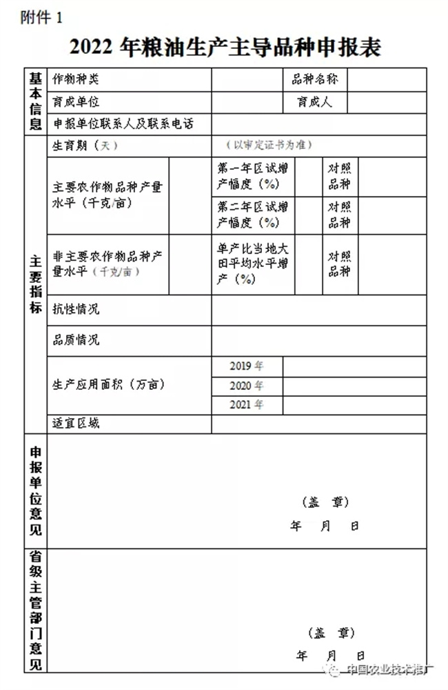 附件:1. 2022年糧油生產(chǎn)主導(dǎo)品種申報表