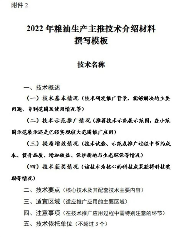 2.2022年糧油生產(chǎn)主推技術(shù)介紹材料撰寫模板