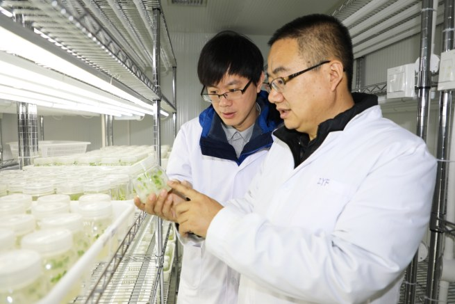 張彥鋒(右)在育種實驗室內
