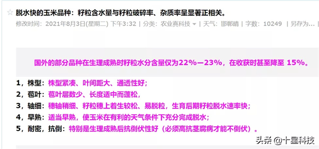 也就是說——真正的早熟的,又綜合抗災(zāi)能力強(qiáng)的,脫水快的機(jī)收品種,還沒有出現(xiàn)呢!