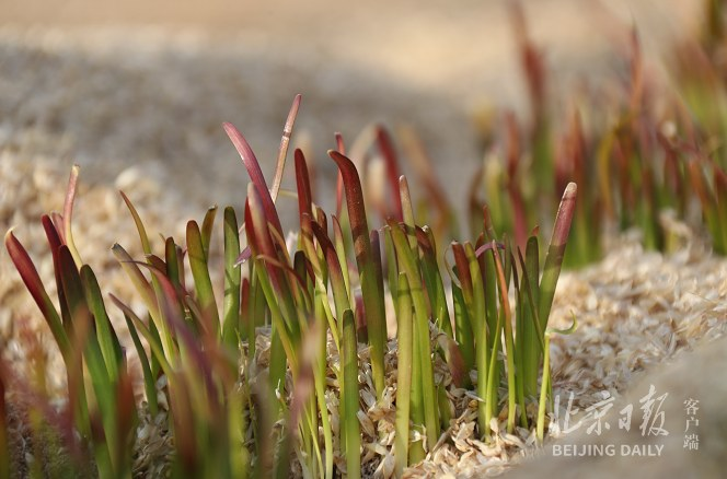 在瀛海鎮(zhèn)政府的幫助下,劉德才栽培的“五色韭”不僅成功注冊(cè)了“五哥五嫂五色韭”商標(biāo),同時(shí)還被列入大興區(qū)非物質(zhì)文化遺產(chǎn)代表性項(xiàng)目推薦名單。如今,劉德才的韭菜地從當(dāng)初的試種田擴(kuò)種到了2畝地的溫室大棚里。為了讓“五色韭”不斷適應(yīng)現(xiàn)在的土壤與種植環(huán)境,劉德才不斷攻克種植難關(guān),逐步探索出使用雞蛋殼和香油渣作肥料,鋸末加麥糠作保溫的栽培方式,幫助“五色韭”根壯苗旺。
