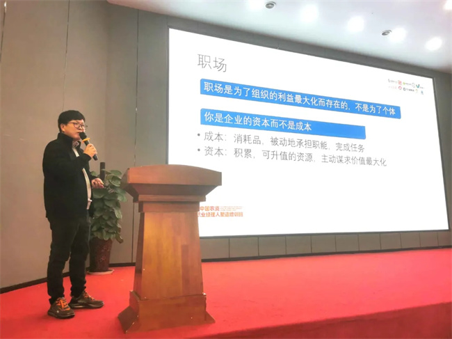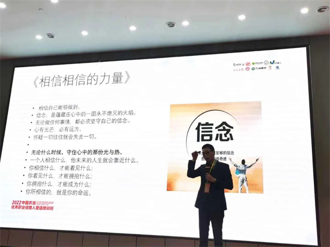 培訓(xùn)的最后,由心連心東部戰(zhàn)區(qū)經(jīng)理張衛(wèi)超老師帶來《可以復(fù)制的成長》,農(nóng)業(yè)職業(yè)經(jīng)理人是一個(gè)新興的職業(yè),卻可以通過學(xué)習(xí)成長為合格的新型農(nóng)業(yè)的管理人才,如今,全國各地缺乏大量的職業(yè)經(jīng)理人才,希望學(xué)員們加強(qiáng)業(yè)務(wù)知識學(xué)習(xí),加強(qiáng)交流合作。