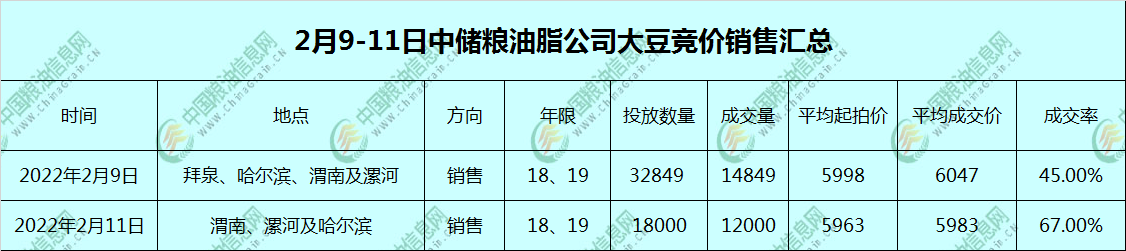 兩次中儲糧拍賣的成交率較高,東北產(chǎn)區(qū)部分拍賣底價(2月9日為6030元/噸,2月11日為6060元/噸)上調(diào),且非主產(chǎn)區(qū)標(biāo)的的拍賣都有成交,上周兩次拍賣的持續(xù)向好,反饋出需求較為旺盛。