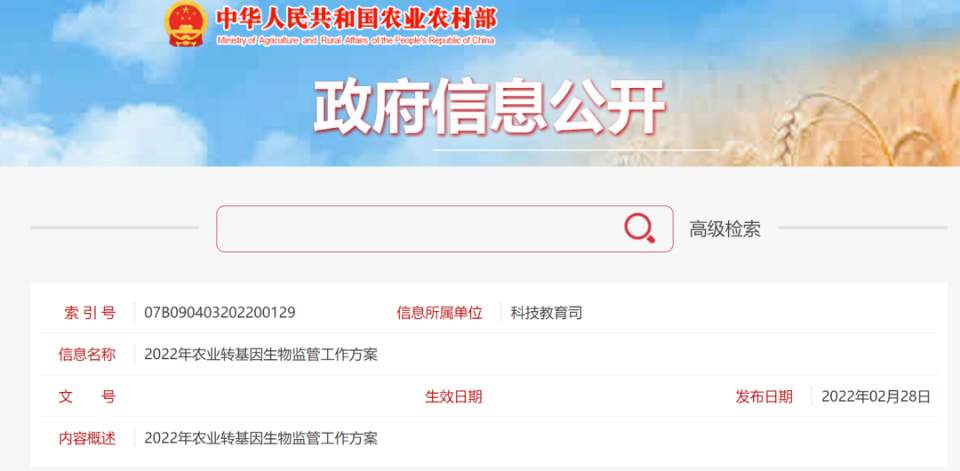 2022年農(nóng)業(yè)轉(zhuǎn)基因生物監(jiān)管工作方案