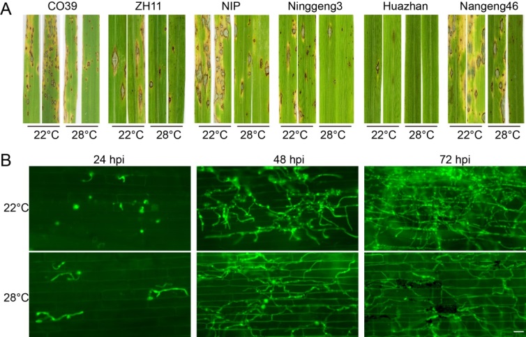 稻瘟病由絲狀子囊真菌引起,是水稻最嚴(yán)重的病害之一。長(zhǎng)期以來,溫度變化影響田間稻瘟病的發(fā)生被人們熟知。多年的田間調(diào)查發(fā)現(xiàn),當(dāng)溫度達(dá)到28~30℃及以上,不利于稻瘟病的發(fā)生,但在24~26℃及以下稻瘟病容易流行,其具體原因此前未有公開揭示。