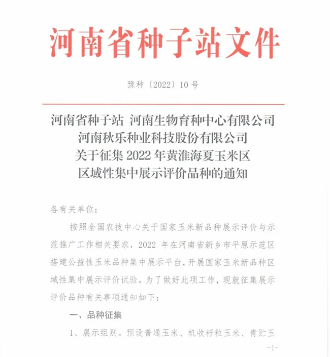 股有限公司聯(lián)合下發(fā)《關(guān)于征集2022年黃淮海夏
