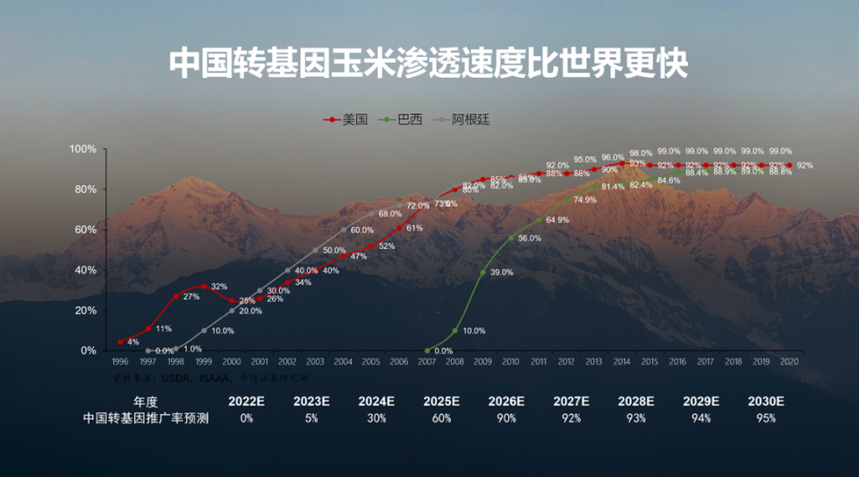 2)轉(zhuǎn)基因玉米將在三年內(nèi)滲透 60% 以上