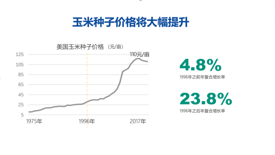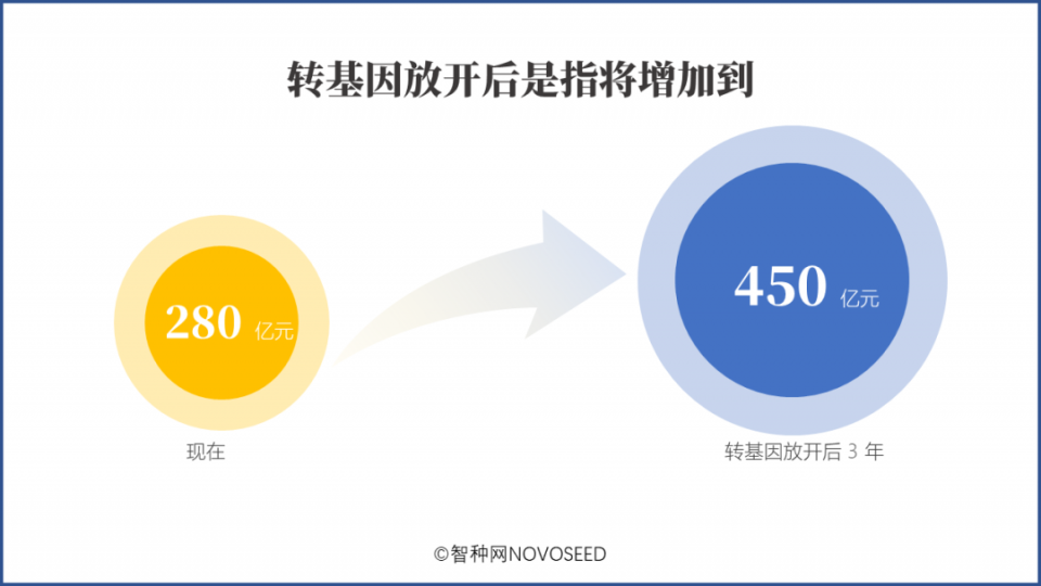 轉(zhuǎn)基因種子放開三年后,玉米種業(yè)市值將增長到 450 億元。