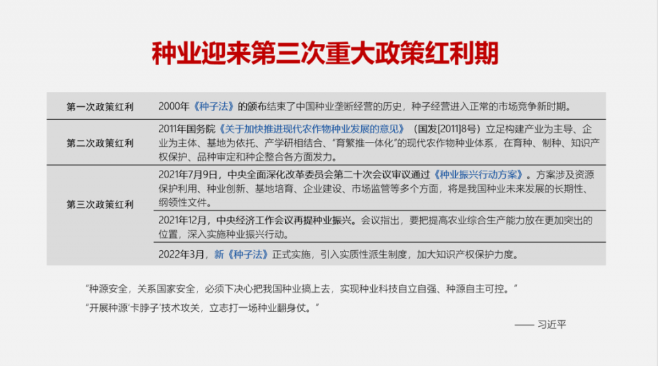 轉(zhuǎn)基因產(chǎn)業(yè)化將深刻改變種業(yè)發(fā)展方向和行業(yè)格局,我國種業(yè)未來升級發(fā)展的核心動能。