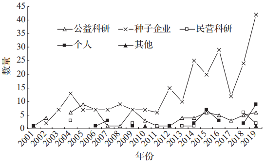 圖8 2001-2019年不同申請主體品種權(quán)申請量變化