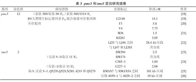 其后,很多學(xué)者對(duì)pmc3 和tms5 展開了深入的研究。pms3和tms5基因的定位研究結(jié)果匯總于表3。