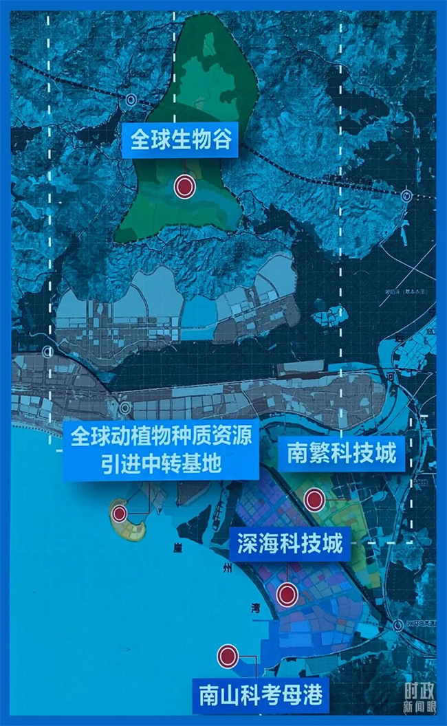 △南繁科技板塊包括南繁科技城、全球動植物種質(zhì)資源引進(jìn)中轉(zhuǎn)基地、全球生物谷,深??萍及鍓K重點布局深??萍汲恰⒛仙娇瓶寄父?。(總臺央視記者郭曉龍拍攝)