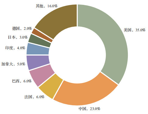 2019年全球商用種子市場規(guī)模與2017年、2018年基本持平,約為40億美元。其中,美國是世界第一農(nóng)業(yè)大國,也是種業(yè)第一大市場;中國占據(jù)全球種子市場份額的23%,排名第二(圖1)。
