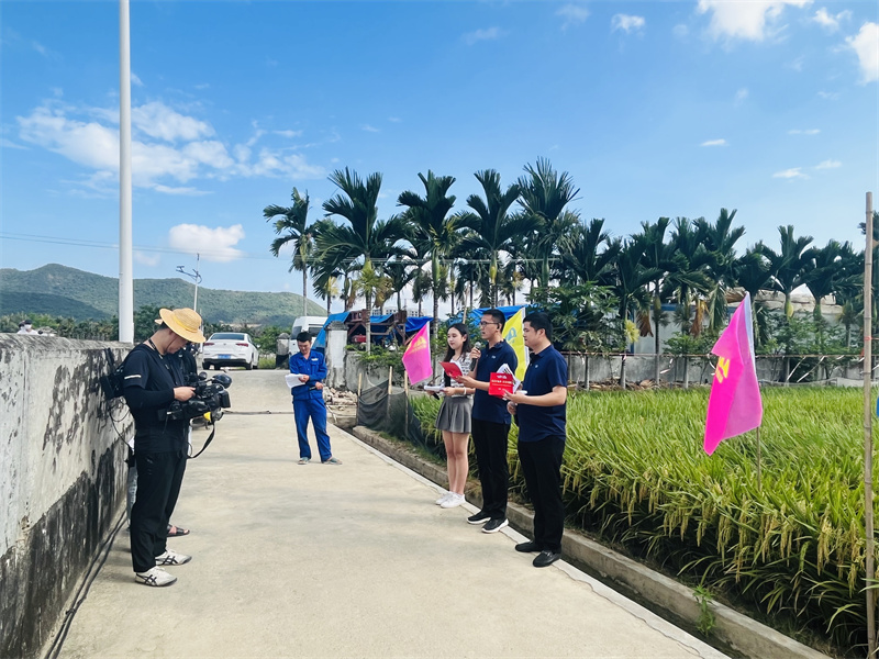 4月21日,三亞吉陽南繁基地,天空湛藍(lán),稻穗低垂,沉甸甸地迎風(fēng)輕舞。上午9點(diǎn)至12點(diǎn),一場在線人氣熱度累計(jì)到達(dá)59.5萬人次的田間直播在這里火熱開啟。