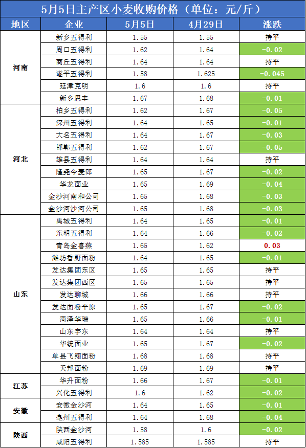 圖1:5月5日主產(chǎn)區(qū)小麥?zhǔn)召弮r(jià)格