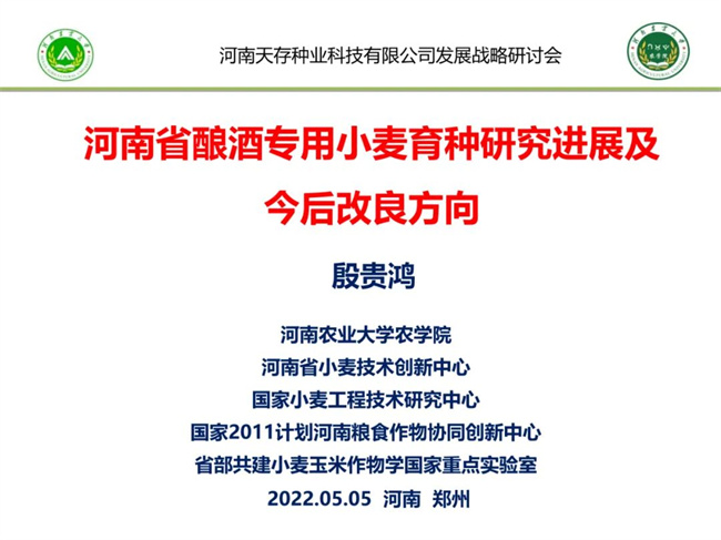 發(fā)展戰(zhàn)略研討會發(fā)展研討會在鄭州通過線上方式成功舉行。會上,“周麥27號育種人”、河南農業(yè)大學農學院副院長、種業(yè)技術創(chuàng)新中心主任殷貴鴻研究員做了題為《河南省釀酒專用