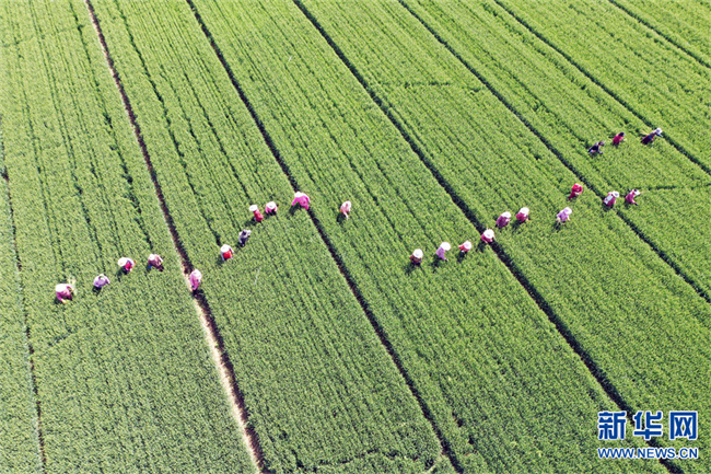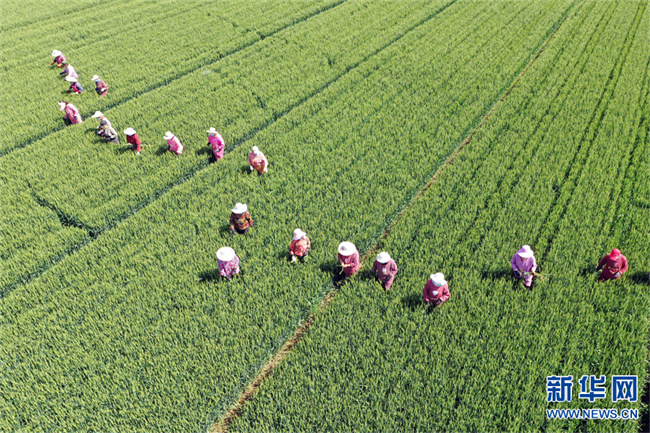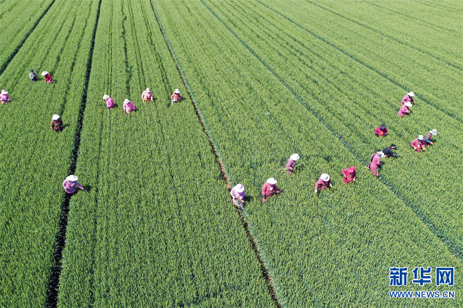 河南省沁陽市懷慶街道明王莊村,人們正在拔除混雜在