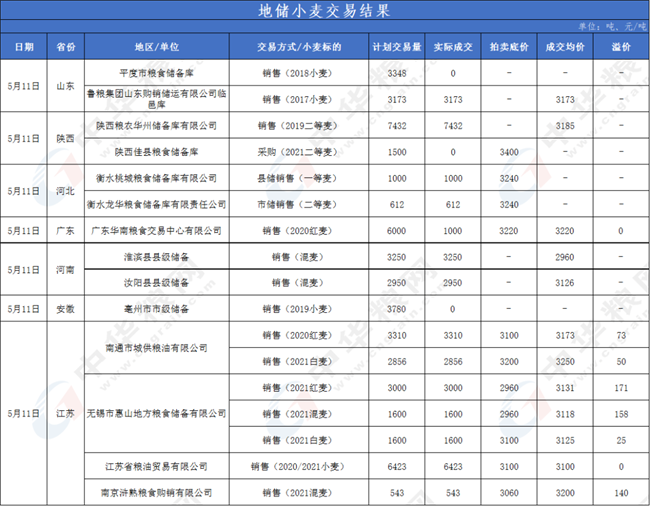 圖2:5月11日地儲小麥交易結(jié)果