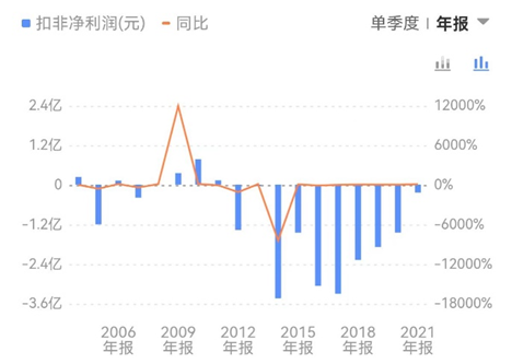 扣非凈利潤已連續(xù)虧損十年,合計虧損18.65億元(2012~2021年)