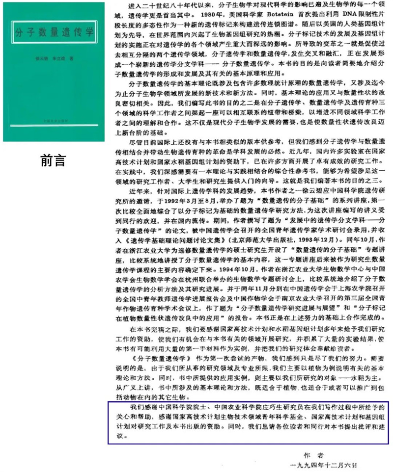 圖4 《分子數(shù)量遺傳學(xué)》前言中致謝莊巧生先生